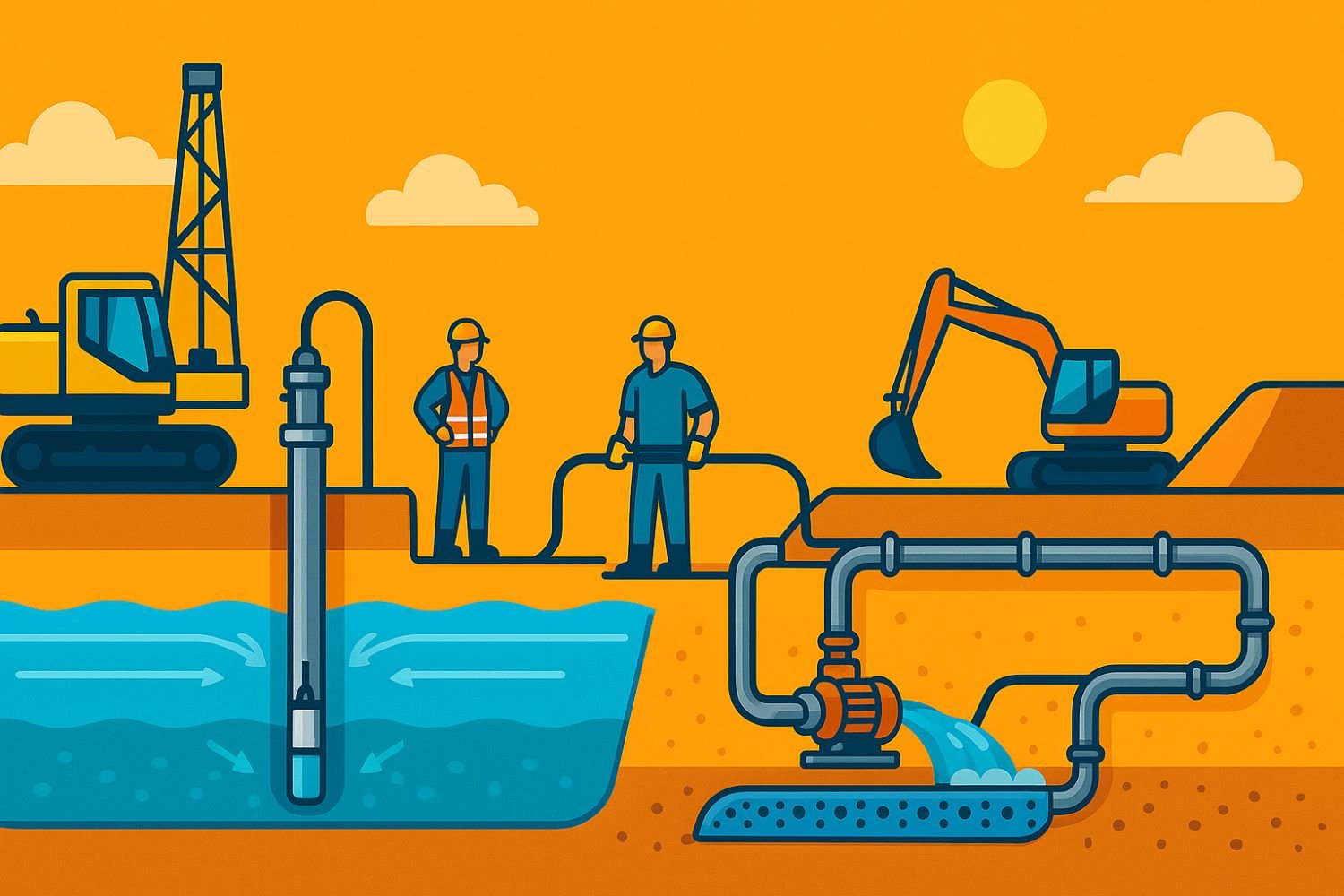 П.С.: Когда в задачи входит устойчивое понижение уровня и контроль дебита, продуманное водопонижение скважиной превращает водонасыщенный участок в управляемую среду, где техника работает ритмично, а строители уверены в результате.