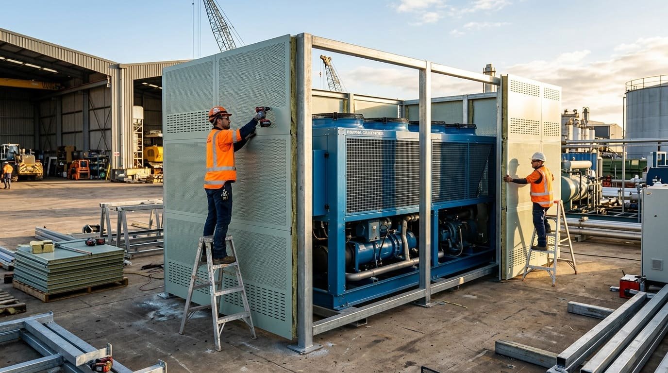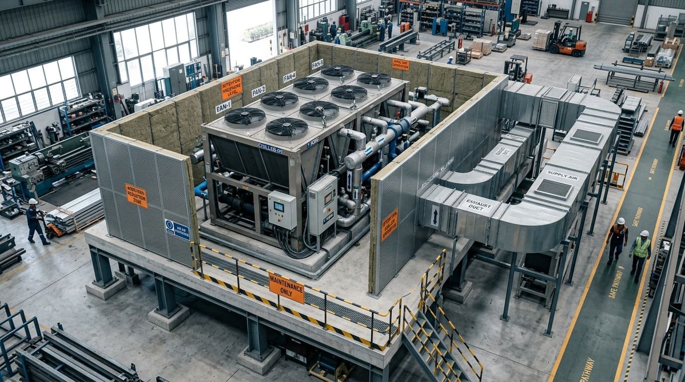 Пример шумоизоляции чиллера: экраны, глушители и виброопоры в реальном проекте.